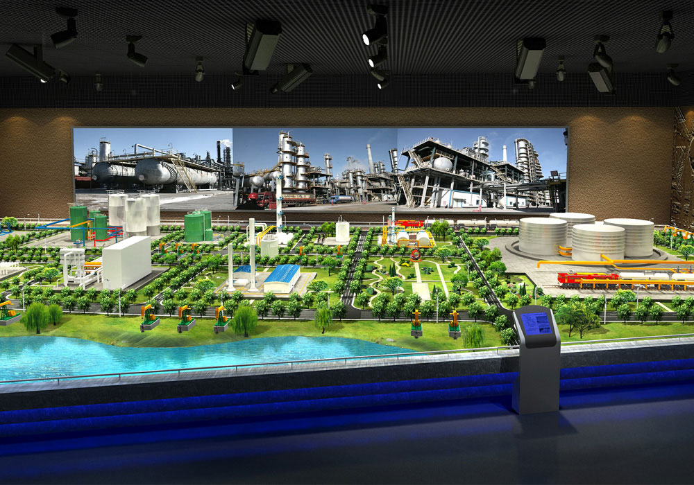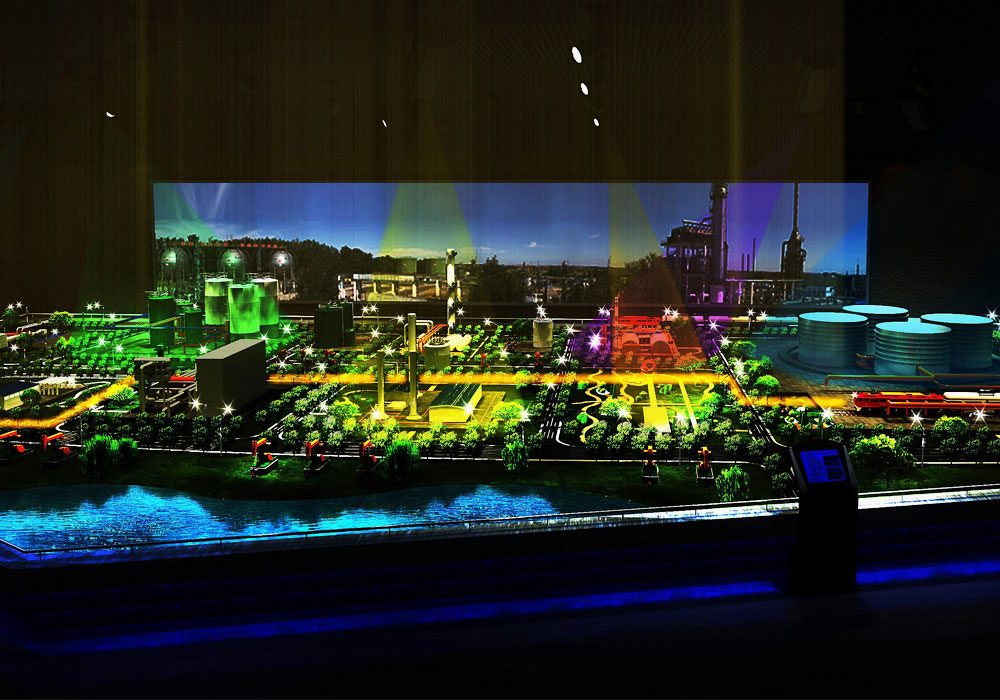描述:沙盘制作细致入微。劲浪科技不但在物理沙盘上设计了灯光显示系统,还在数字内容上配合了高清照片、视频,并配合相关的文字说明和影像展示,展现油田生产的繁荣景象,使参观者能够立体