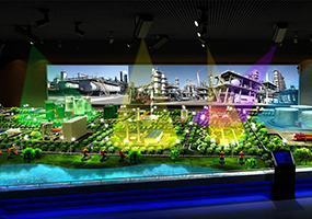 全方位互动式多媒体展示效果。该投影沙盘实现对模型、灯光、大屏幕投影进行自动、手动控制,以语音、文字、图片和视频图像等多媒体形式配合同步展示模型沙盘中的各类相关信息
